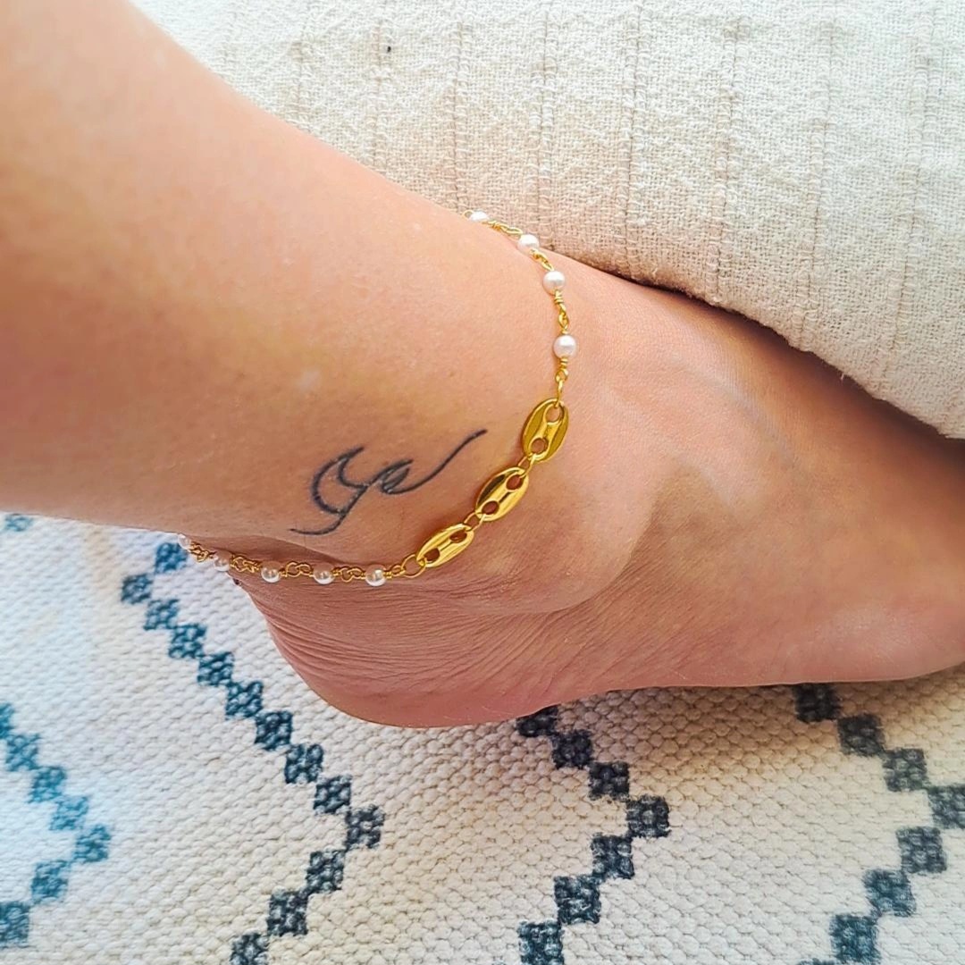 Αλυσίδα ποδιού με χρυσά σχέδια και μικρές πέρλες που χαρίζει κομψό στυλ στα πόδια σου!