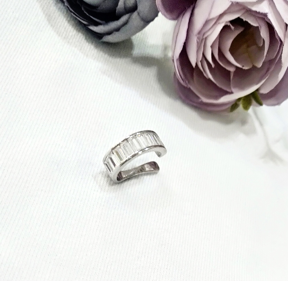 Ασημένιο σκουλαρίκι ear cuff με λευκά κρύσταλλα. Φοριέται χωρίς να χρειάζεται τρύπα.