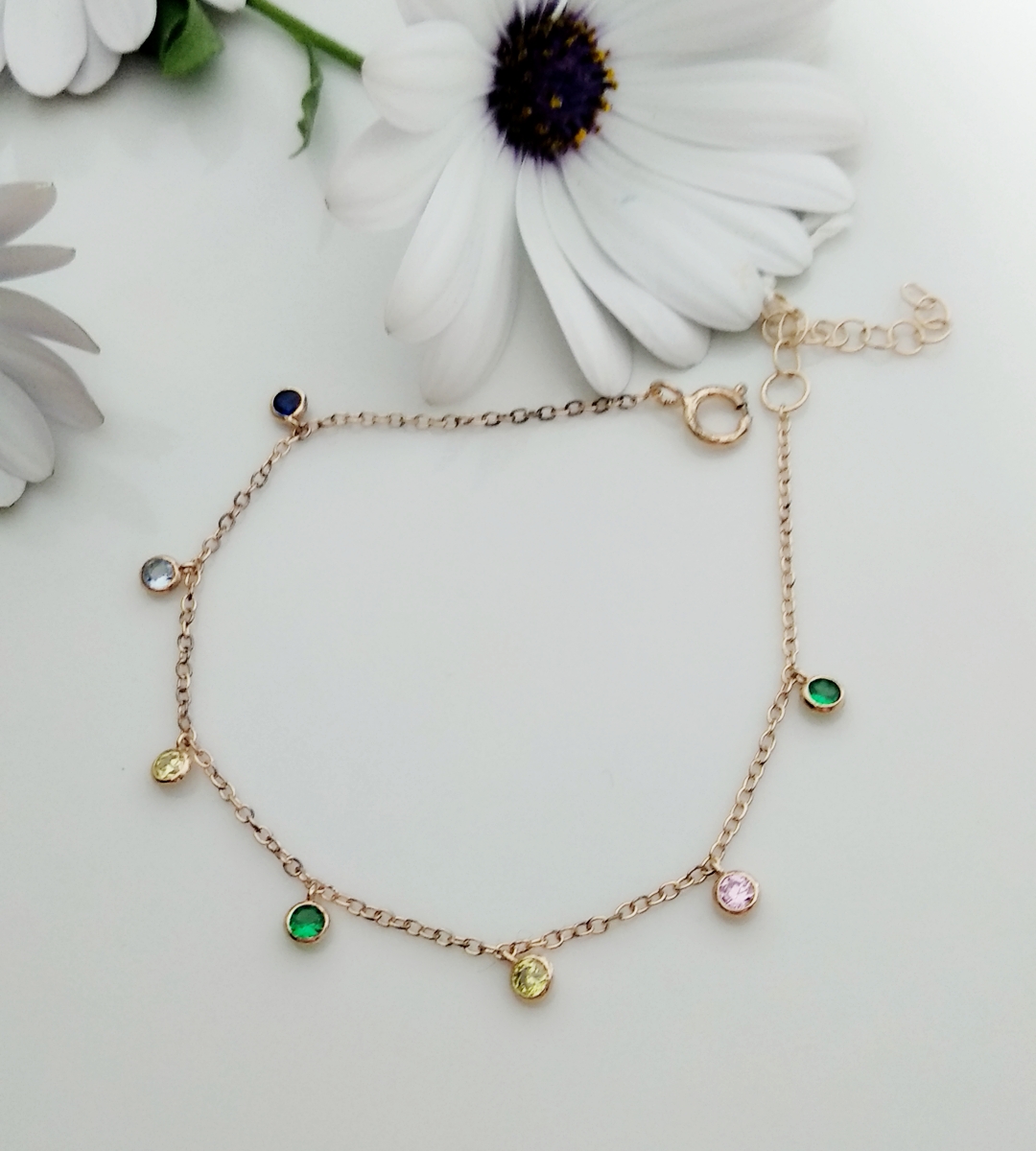 Ασημένια αλυσίδα χεριού 925, με πολύχρωμα ζιργκόν, επιχρυσωμένη με ροζ χρυσό