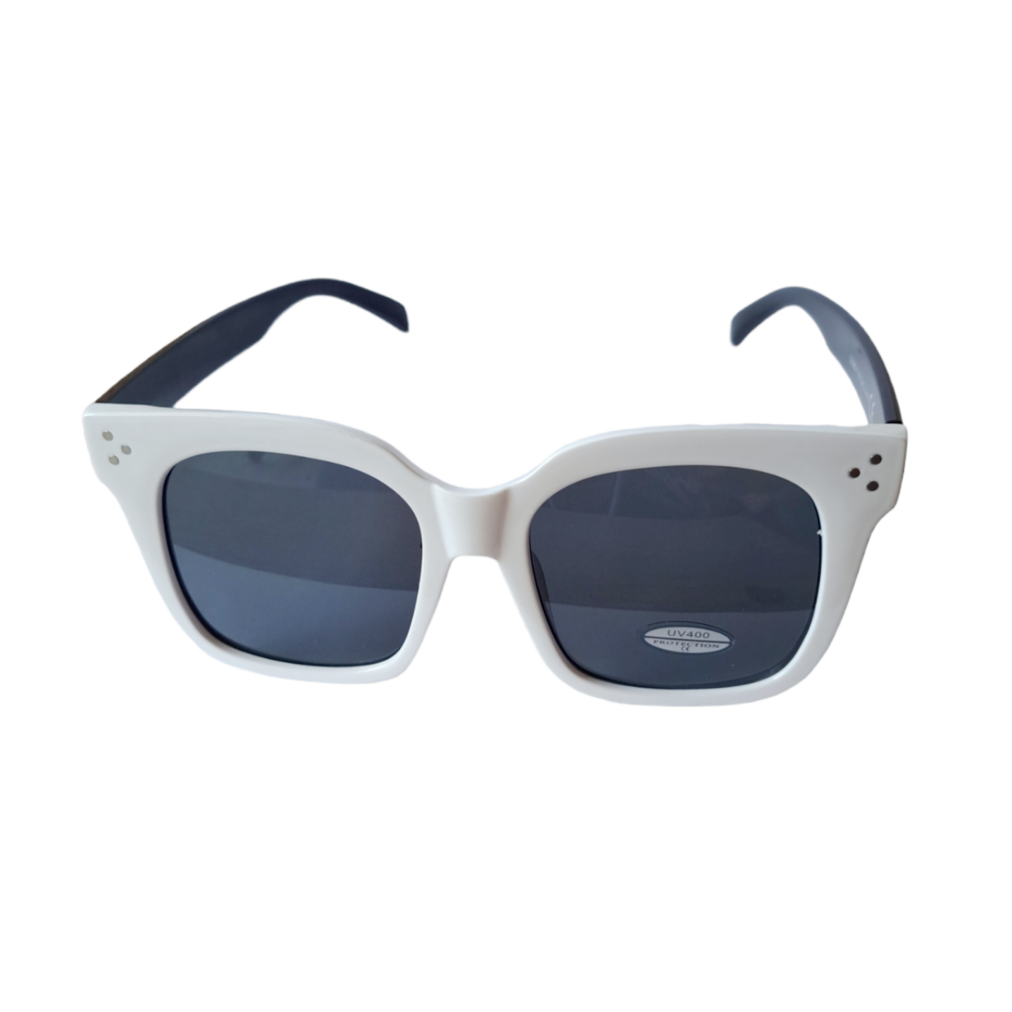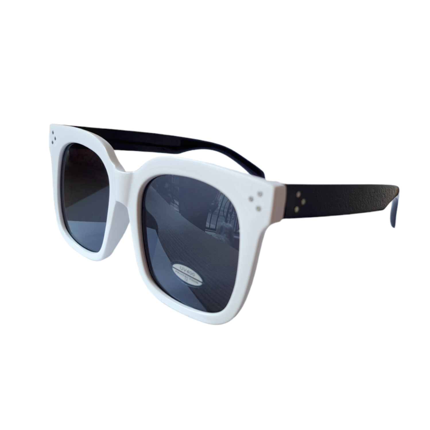 Γυναικεία γυαλιά ηλίου μεγάλα ασπρόμαυρα. Λευκό σκελετό μπροστά και μαύρους βραχίονες.