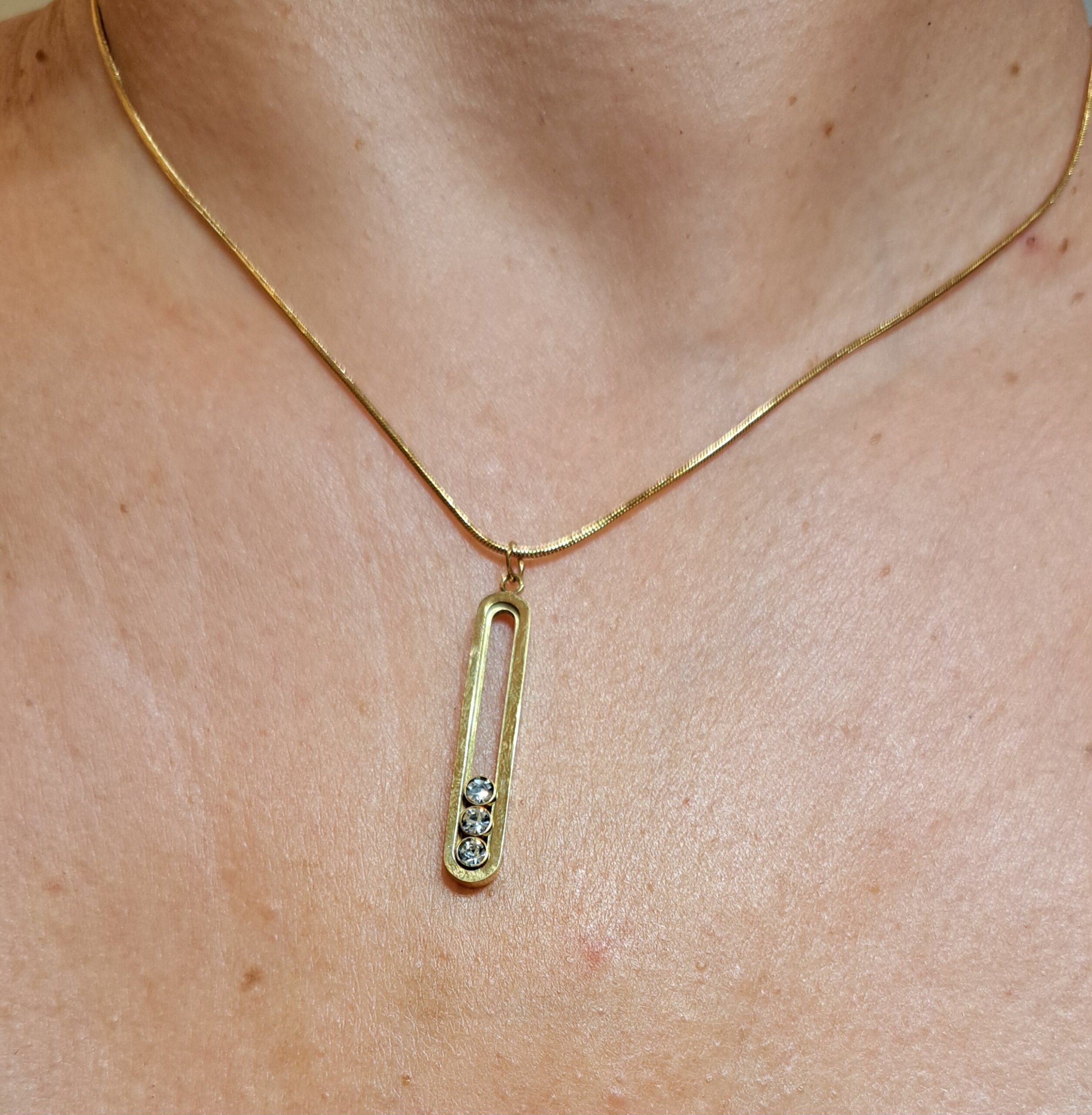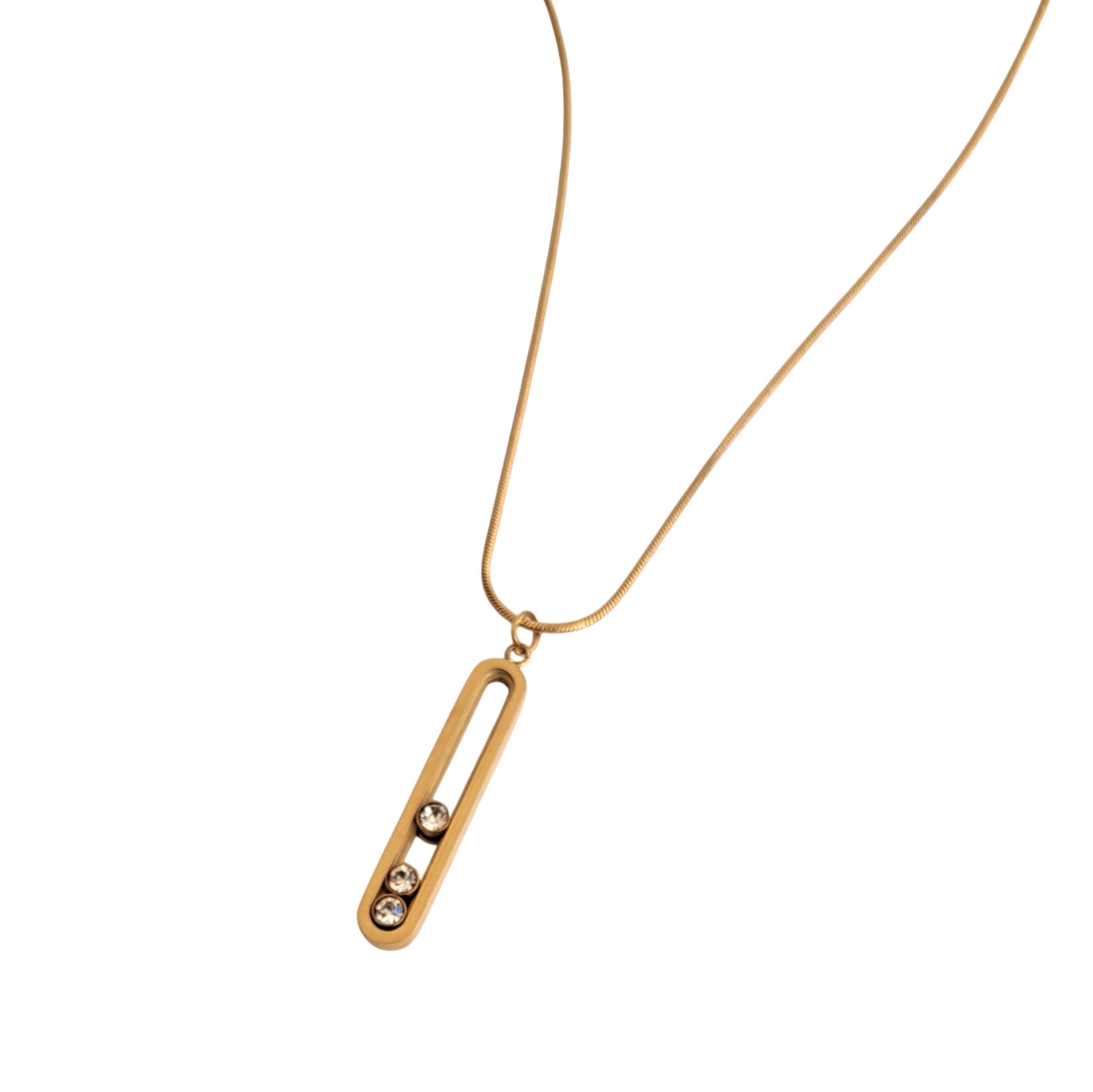 Ανακάλυψε το Golden Grace, ένα minimal ατσάλινο κολιέ, με γεωμετρικό κρεμαστό σχέδιο με τρεις κινούμενες κρυστάλλινες πέτρες.