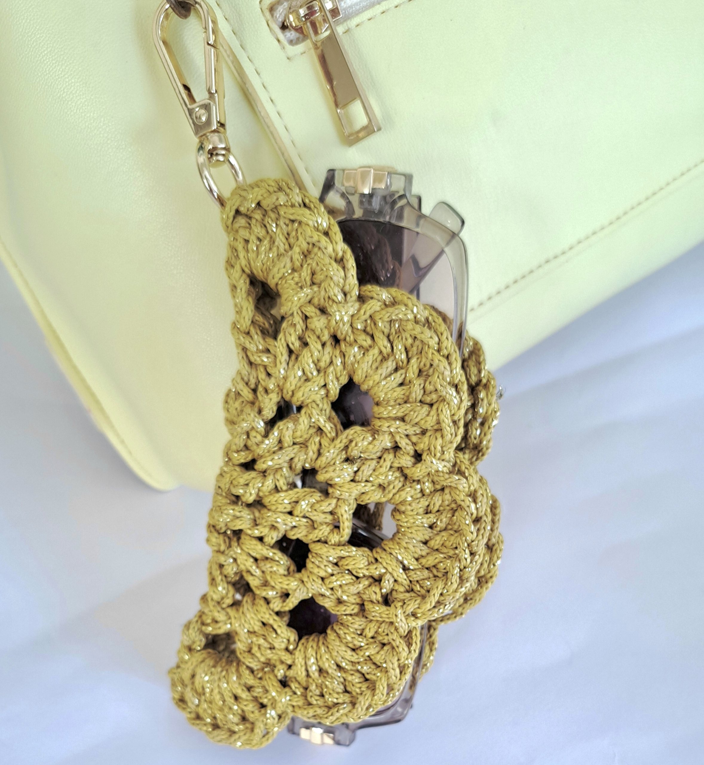 Προστάτεψε τα γυαλιά σου με στυλ και φινέτσα. Χειροποίητη πλεκτή θήκη – μπρελόκ, ιδανική για γυαλιά ηλίου ή οράσεως, κατασκευασμένη στο χέρι με αγάπη και προσοχή στην λεπτομέρεια.