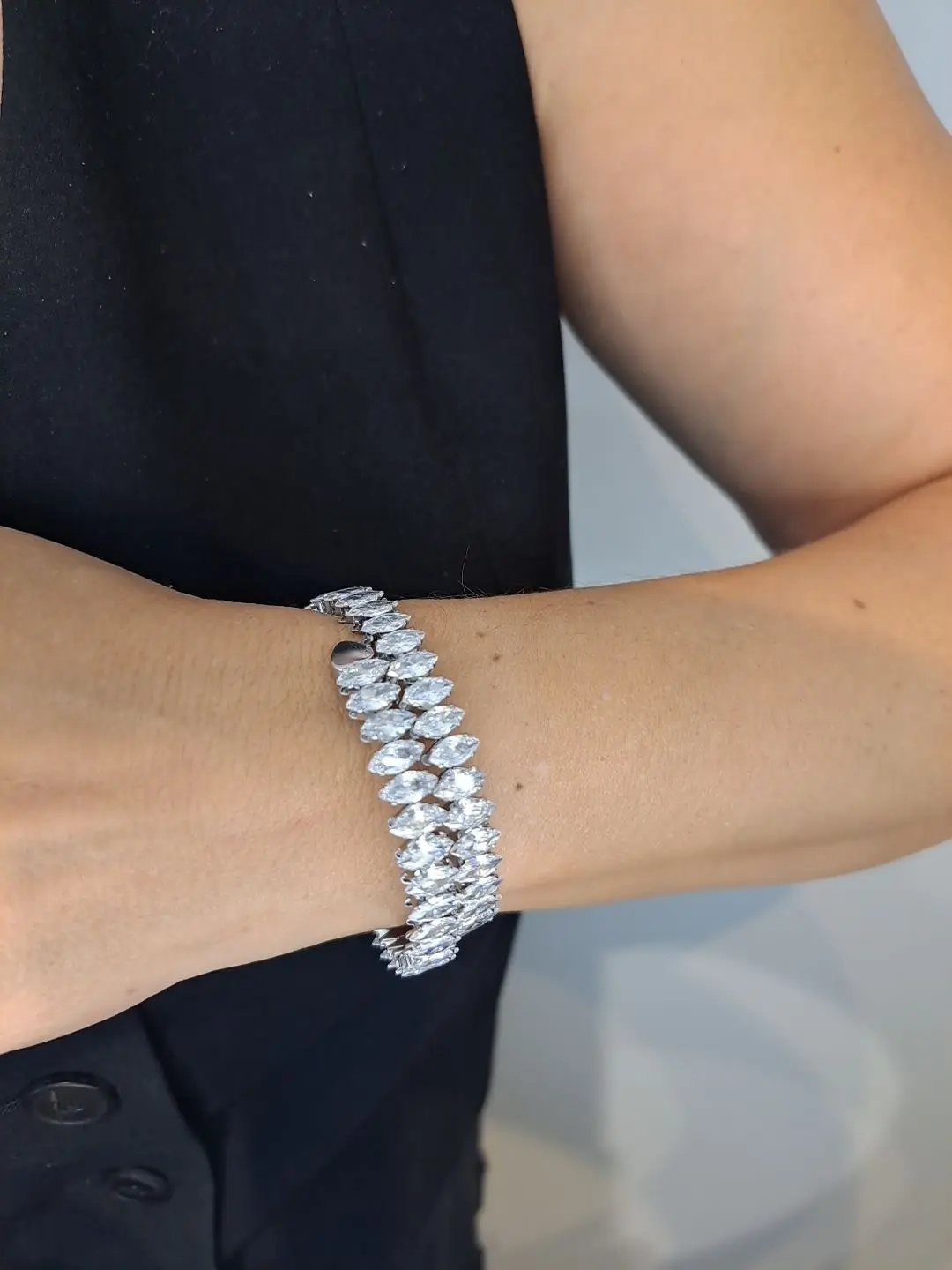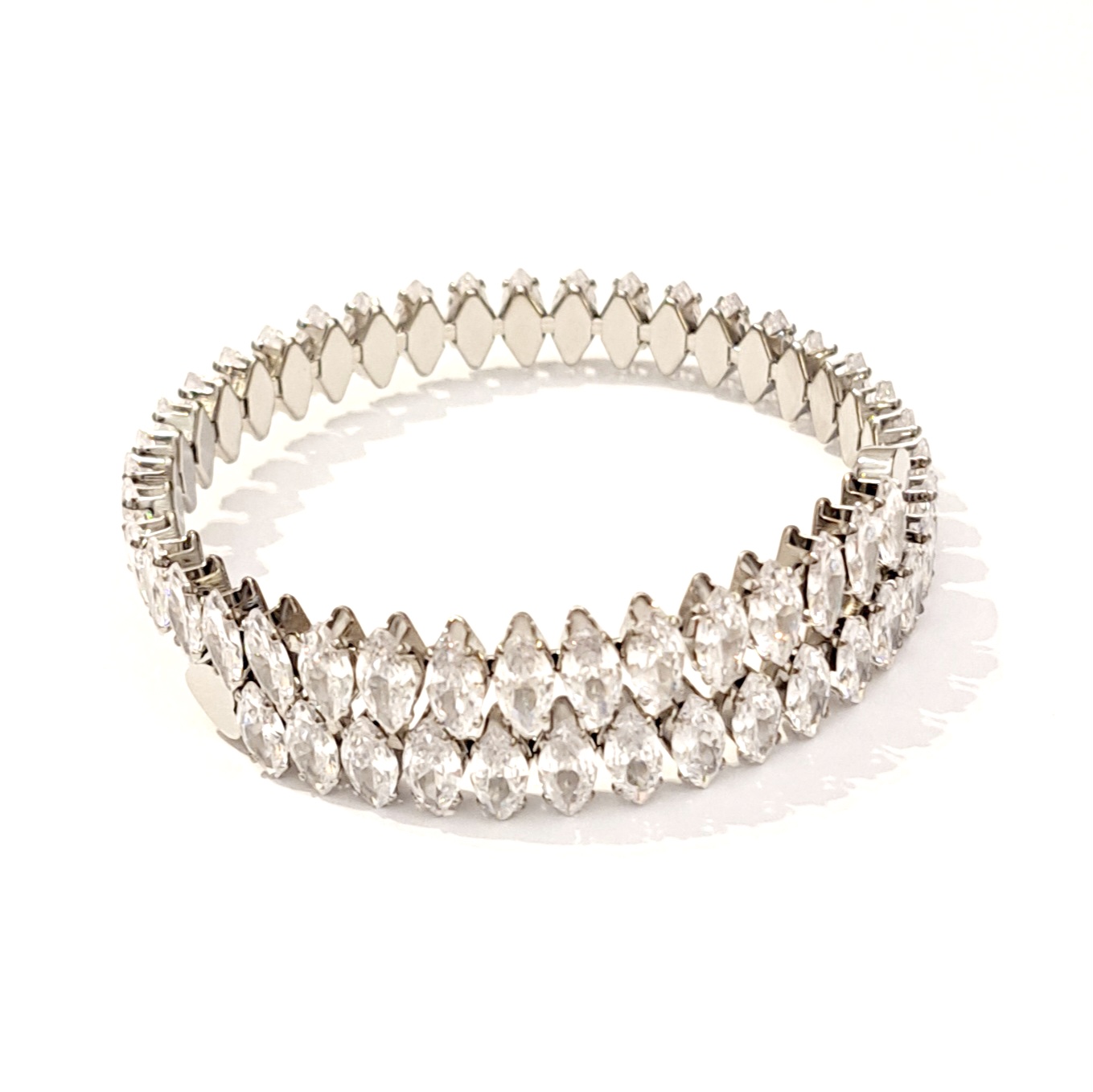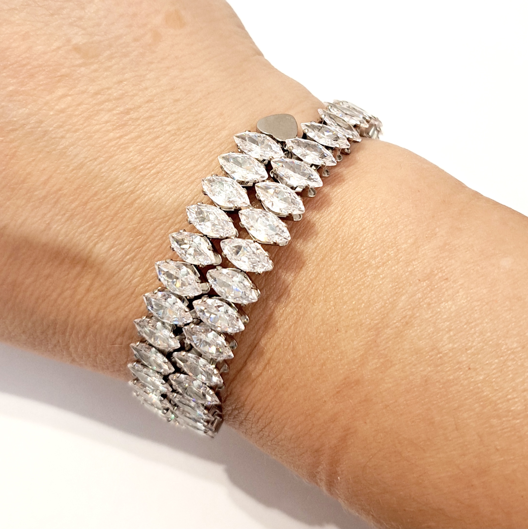 Γυναικείο βραχιόλι με κρύσταλλα σε ασημί χρώμα που θα απογειώσει το στυλ και την εμφάνιση σου! Είναι εύκαμπτο για να φοριέται εύκολα.