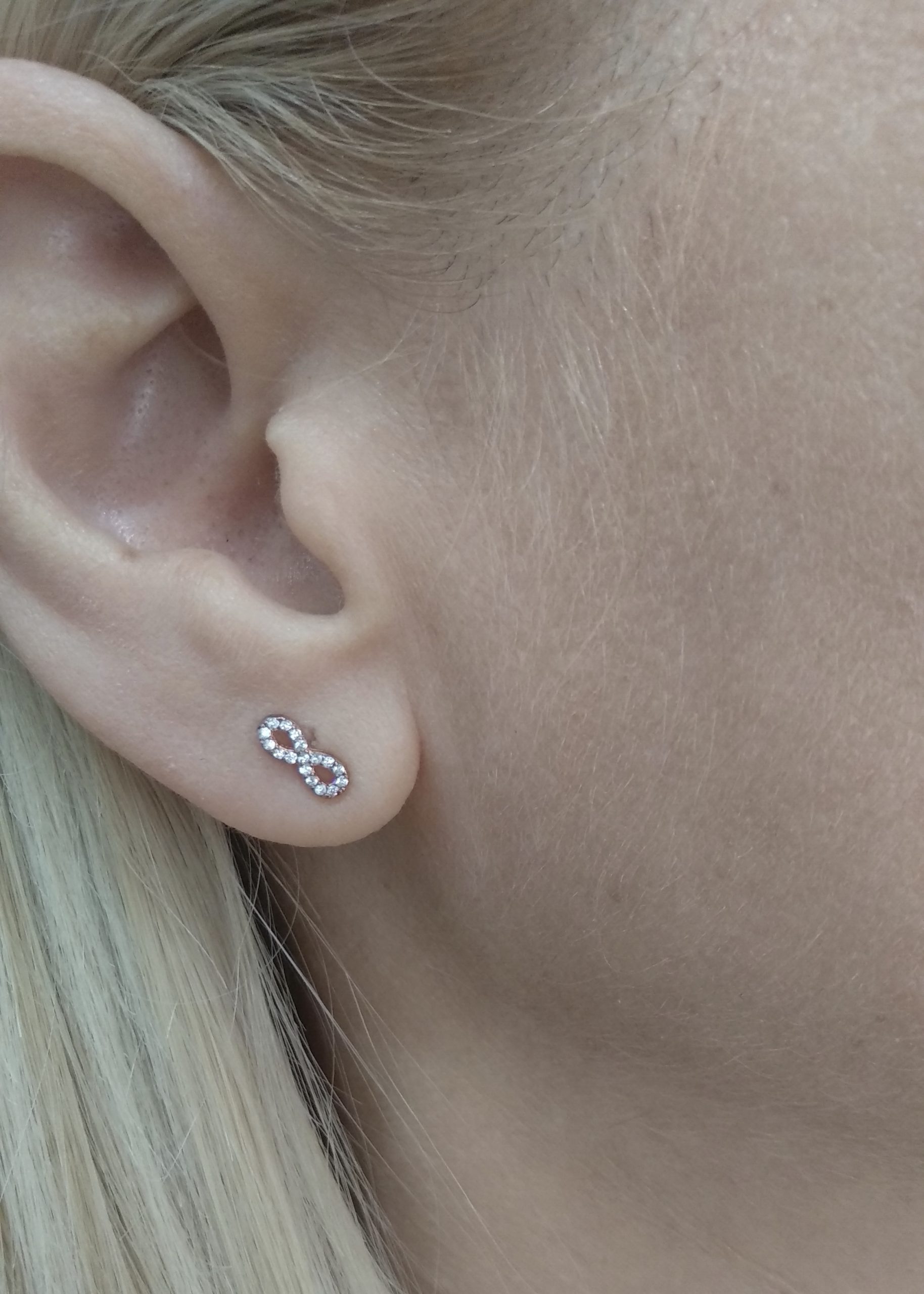 Ασημένια μικρά σκουλαρίκια 925, “άπειρα”, με ζιργκόν σε ροζ gold