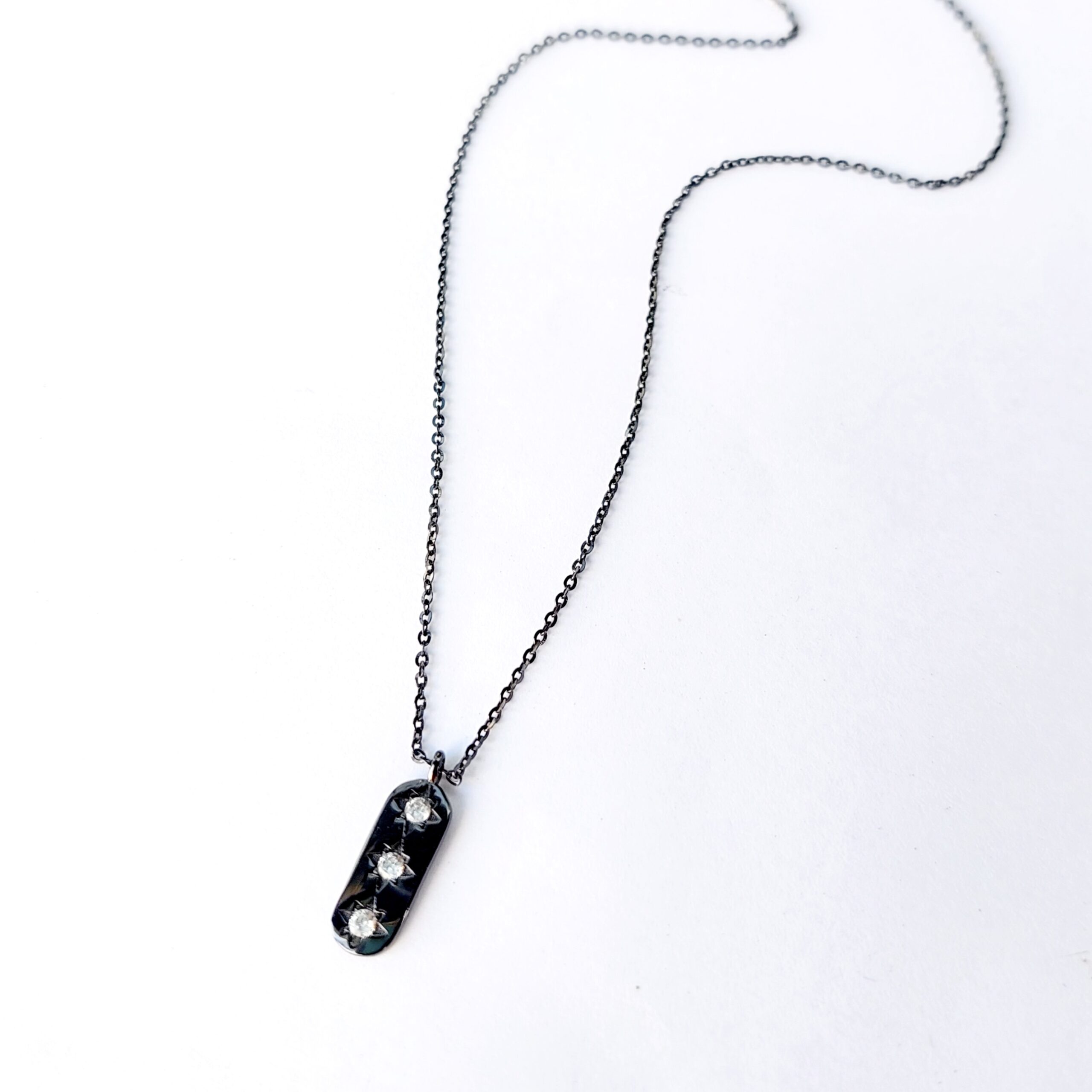 Κολιέ αλυσίδα, από ασήμι 925, επιροδιωμένο, με μοτίφ ταυτότητα και λευκές πέτρες ζιργκόν