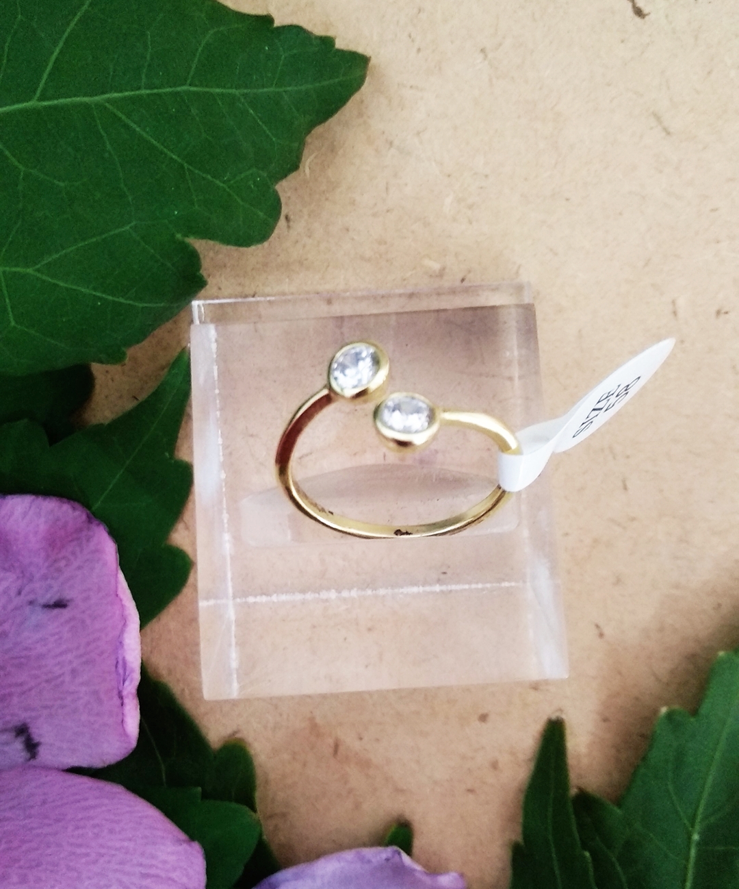 Ασημένιο δαχτυλίδι με κίτρινο επιχρύσωμα και δυο ζιργκόν, εύκολα ρυθμιζόμενο για κάθε δάχτυλο