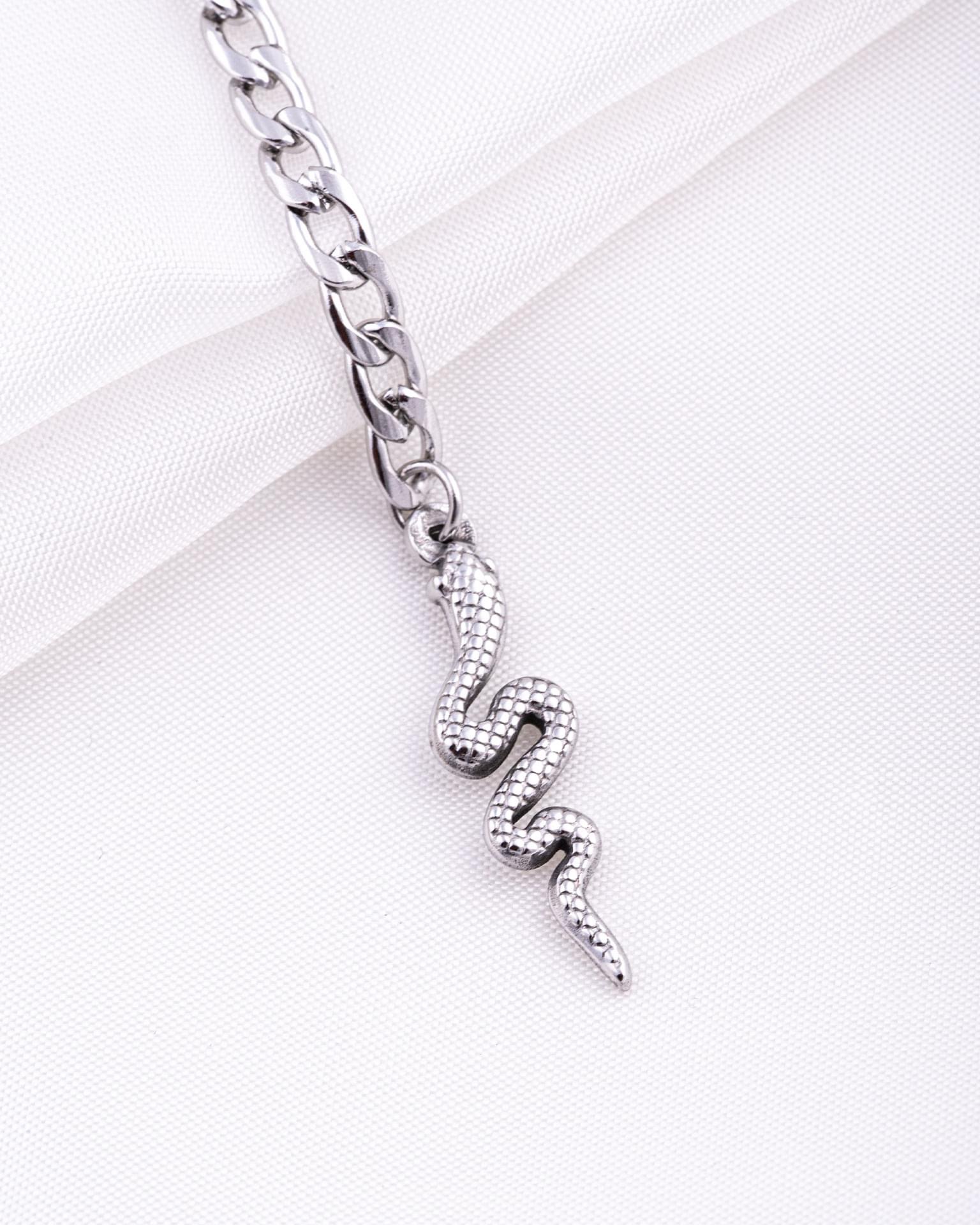 Κολιέ με αλυσίδα και κρεμαστό στοιχείο φίδι από ανοξείδωτο ατσάλι. Ανθεκτικό στο νερό λόγω της επεξεργασίας του, χωρίς να προκαλεί αλλεργίες.