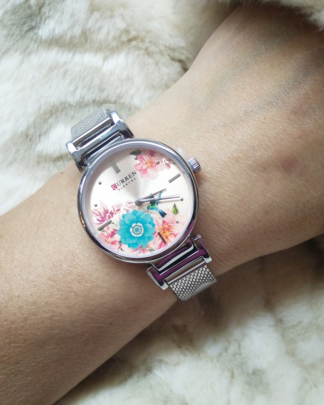 Γυναικείο ρολόι Curren με rose gold καντράν, διακοσμημένο με υπέροχα λουλούδια.